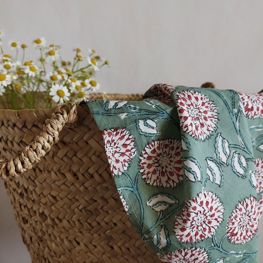 The technique consists into dyeing a hand-carved woodblocks and manually press it directly onto the fabric in order to print the patterns.